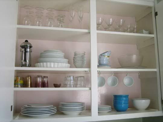 Love the pink tint inside this cabinet.