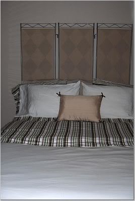 Prop a folding screen behind your bed to create a headboard.